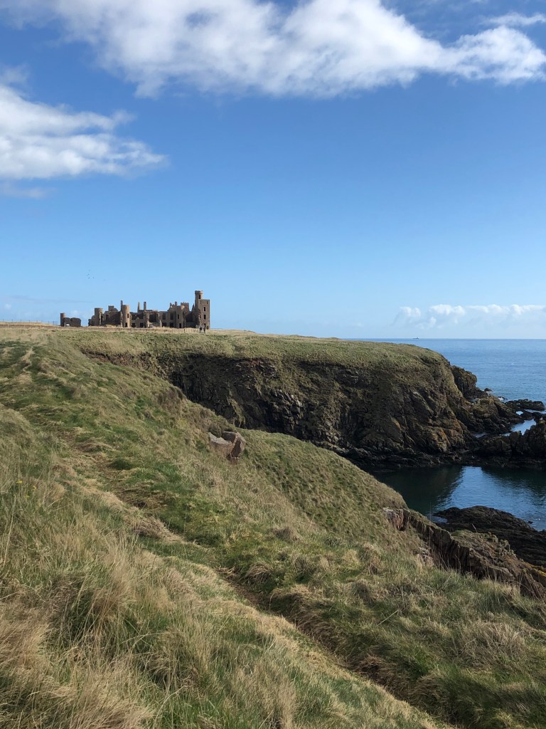 Just up the road from Newburgh and Forvie, still on the stagecoach 61, is Cruden Bay and New Slains. Cruden Bay is a nice, well umm, bay, with a long beach… and just a short walk away through a wooded area and past a field is New Slains Castle. New Slains is a ruin resting on top of a cliff and colonised by seabirds. Its free to enter and there are no barriers so you can explore to your hearts content. If you’re feeling fit you can also walk North along the sea-cliffs to the Bullers of Buchan and at the right time of year these cliffs are busy with guillemots, kittiwakes and fulmar. I’m not sure how busy it gets here but I’ve visited before in August and there’s only been a handful of groups/families about and there’s plenty of room for you to avoid each other! I’ve heard that in it’s heyday this Baronial mansion saw the likes of folk like Bram Stoker who took inspiration from New Slains for his novel Dracula. Apparently, the building slowly fell into ruin after the roof was removed for tax avoidance reasons. I love nuggets of information like that.