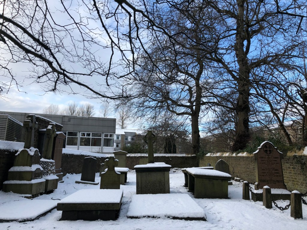 I’ve actually written about the Snow Kirk before in another blog (https://fromakingdombythesea.wordpress.com/2020/07/30/aberdeen/). The Snow Kirk, also known as the kirkyard of St Mary of the Snows, is a secret graveyard tucked right in the midst of the Old Aberdeen university campus. It was once the home of a Catholic church and, as such, the Snow Kirk is a Catholic place of burial. As we all know Catholics weren’t super popular during the reformation but what happened to the Snow Kirk during this time of upheaval is apparently a matter of debate. The church no longer stands but the graveyard still remains and is still in use, although rarely. As far as I know, very few people know that the Snow Kirk is there and even fewer have actually visited. It’s worth going. I think it’s a weirdly haunting place, not because of the dead, but because of where it is and what surrounds it now. It’s almost like people just shut it away and forgot it was there.