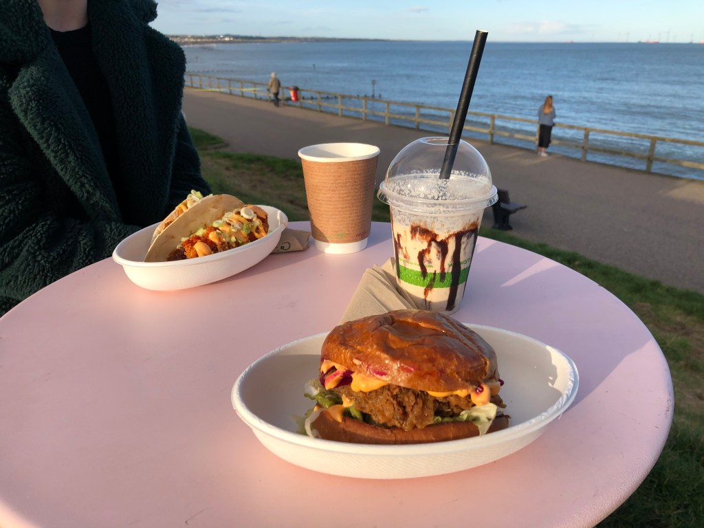 Roots@The Beach is featured in the pictures above and is stationed on the Beach Boulevard close to Footdee. As it’s a bright green food truck it’s not too hard to find. The truck is open Friday to Sunday, 11am to 4pm. I went with my pal Alysha for a late lunch a while ago but I didn’t write down what I had (good work Amy!). I just remember it was some sort of chick’aint burger with some form of delightful plant-based milkshake and Alysha had special Korean BBQ pulled ‘pork’ tacos and a coffee. We both really enjoyed our meals and weeks later I’m still thinking about it…even if I can’t quite recall exactly what it was! For both the burger and the milkshake I’d say that they hit the flavour and texture points of animal products really well. I think one of the things that often puts committed meat eaters off trying vegan alternatives is the misconception that it’s all too ‘health foody’, it’s bland or that fake meat is a poor cousin to real meat (so why would you bother). Both of the things I ate from Roots@The Beach were a bit naughty, very flavourful and great animal product substitutes. I follow @rootscatering_UK on Instagram and it seems that they’re quite flexible with the menu, changing things up regularly and keeping it fresh. Its such a cool little spot, especially as the winter sun goes down.