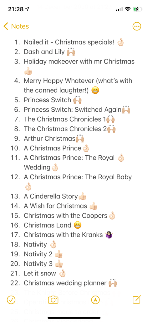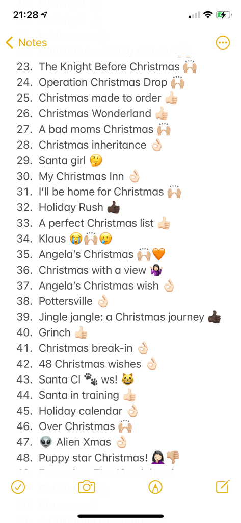 Anyway, I’ve rated them most into 4 groups; the best with a hands up emoji, then those with an okay sign, then a thumbs up…then everything else. I should probably mention in advance that I’m no film critic! I’m easily pleased and I love the unpredictable feminist masterpieces that are hallmark movies! So take my opinions with a handful (not just a pinch) of salt.