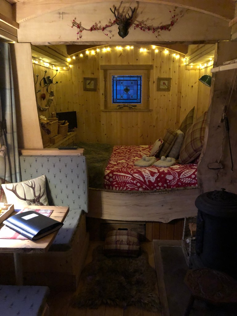 The accommodation was unreal. I thought it was going to be pretty special but it definitely surpassed expectations. It was a little wooden shepherd’s hut lit with fairy lights. It had a little wood burner inside, a bathroom hidden behind a ‘secret’ door, hot water bottles, some milk and biscuits for when we arrived AND some free whisky decanted out for us. They’d thought of everything. It was so cosy. I kind of wish I’d taken more pictures but I was too busy enjoying the space.
